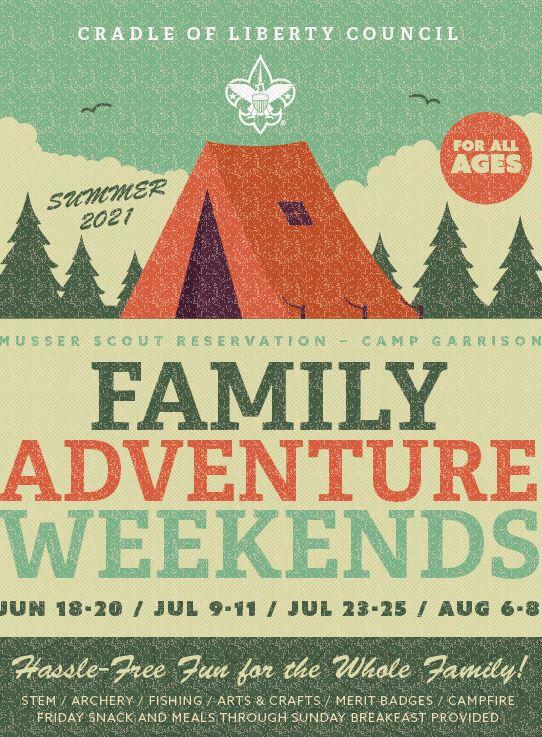 Looking for an opportunity to get outdoors for some camping and fun with your family this summer? Join us at Camp Garrison for one of our Family Adventure Weekends! You bring the family, and we’ll bring the program food, and FUN to make for a great time in camp. Our goal is to help your family enjoy the outdoors without the normal fast-paced schedule of typical Scout camp. The Family Adventure Weekends will have program offered throughout your time in camp, but you will have the opportunity to decide what your family attends. Hanging-out in the campsite is more than acceptable, and going for a hike or fishing are other great ways to spend your weekend with us!